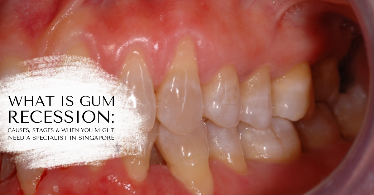 Gum recession, also known as gingival recession according to SingHealth, describes a condition where the gum margin no longer sits at its usual position around the tooth. As the tissue recedes, the root surface becomes exposed. This can have an impact on a single tooth or multiple teeth, and the extent can vary from mild changes along the gum line to more advanced loss of tissue coverage. It is also important to note that once gum tissue has receded, it does not grow back on its own.